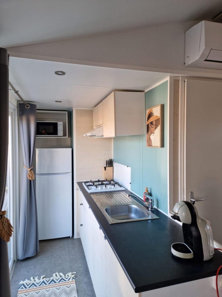 De mobilehome ligt op nog geen 30 meter van het strand. De camping zelf beschikt over geen faciliteiten, maar in de omgeving is er genoeg te doen. We raden deze camping dan ook vooral aan stellen met een klein kindje of aan stellen die houden van een rustige camping aan zee.